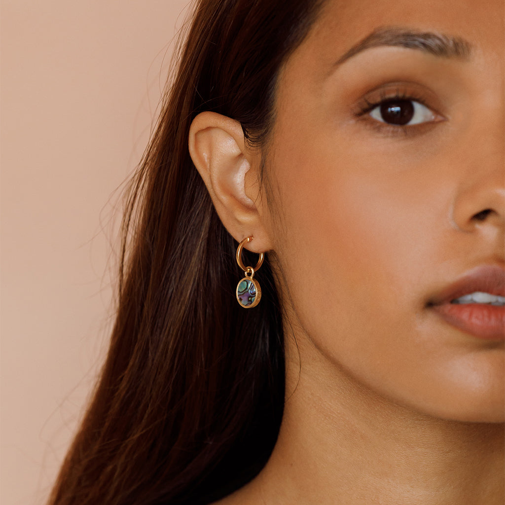 A collection of essential gold hoop earrings that can be worn alone for a minimal look or stacked with other gold hoops for a curated ear, styled your way.