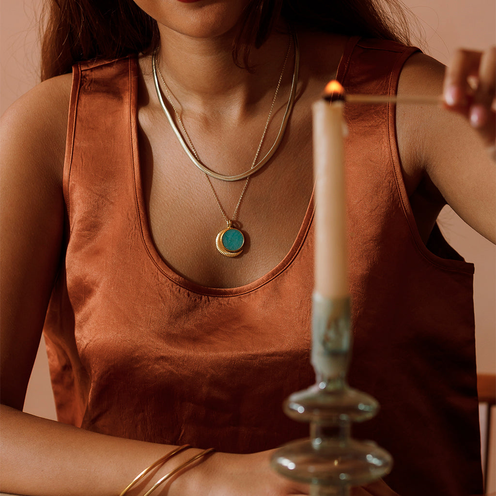 Our signature Porthole Necklace is reminiscent of light flooding through a porthole; featuring a circular pendant in a choice of four gemstones - amazonite, paua shell, mother of pearl and black onyx. To mark a meaningful event, record a motto or leave a little love note you can engrave on the reverse of this pendant with complimentary engraving.
